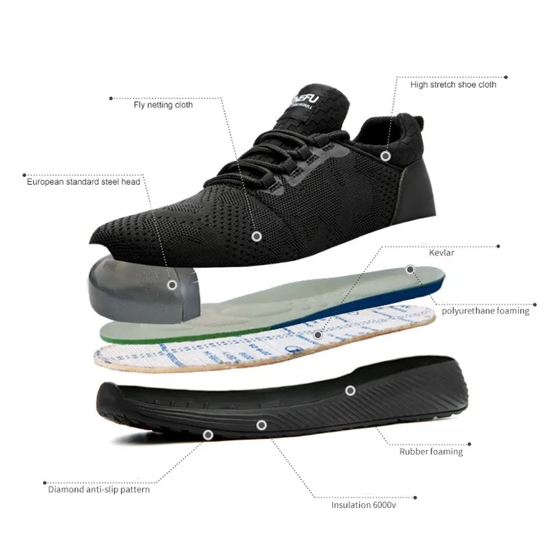 Men's Steel Toe Cap Work Boots Breathable Outdoor Reflective Sneakers Construction Footwear Punctur