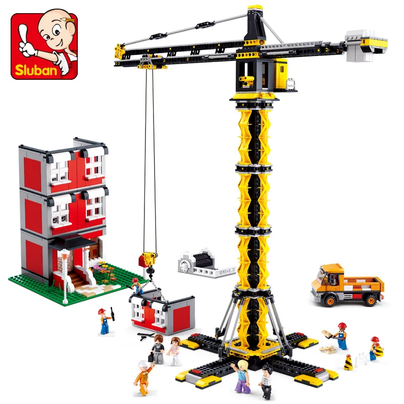 Sluban Building Block City Town Construction Heavy Engineering Tower Crane 1461pcs Educational Bric